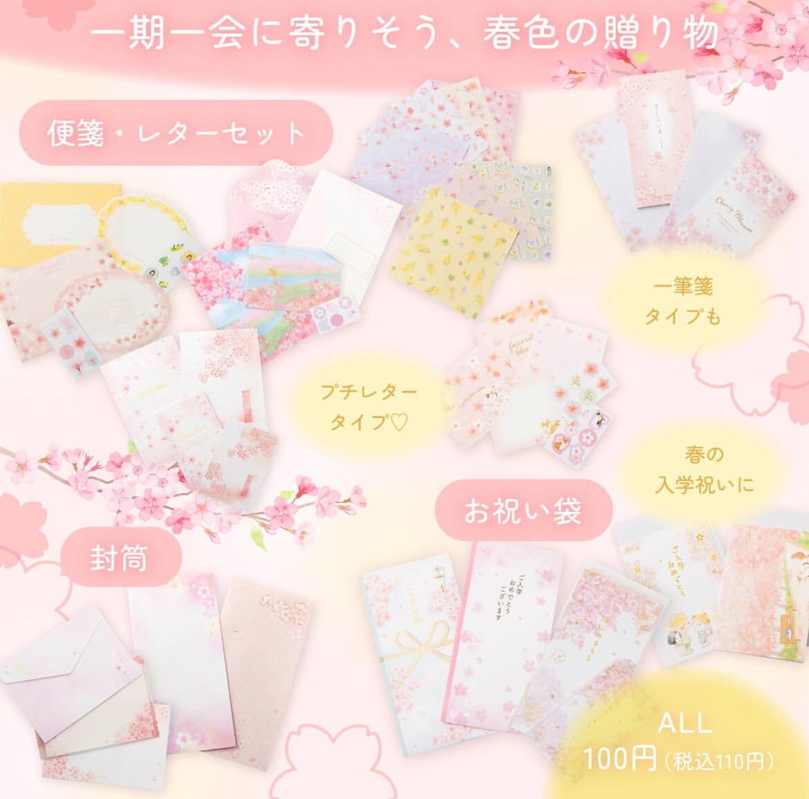 定番のレターセットや封筒は、ご入学・ご退職などのお祝いメッセージを添えるのにもぴったり🌸