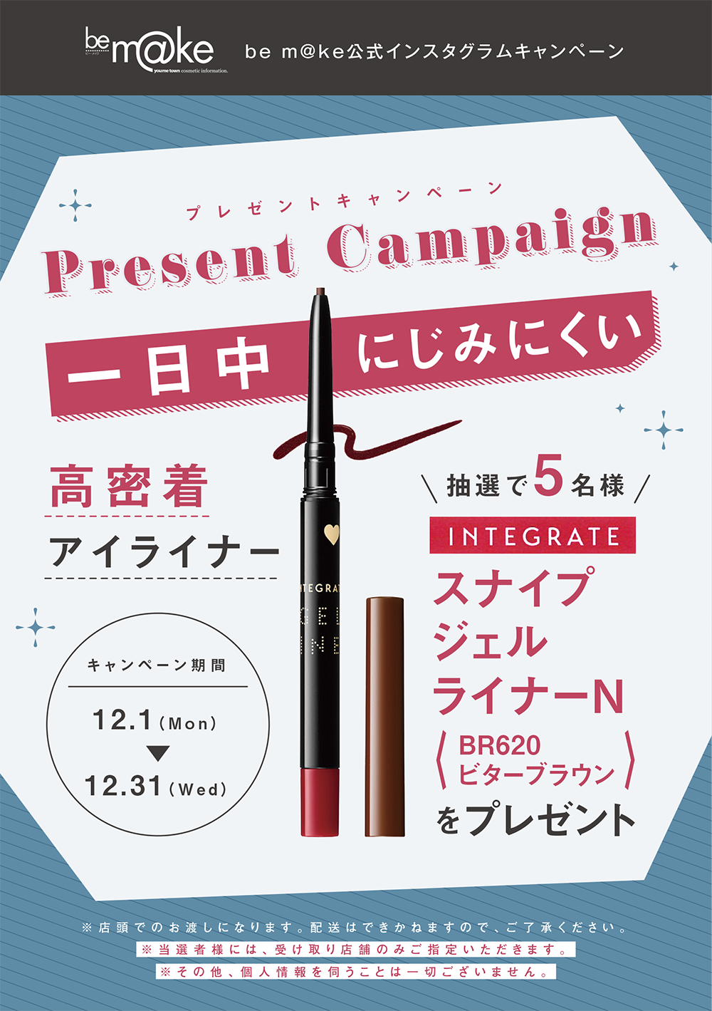 12/1(月)~12/31(水) be m@ke公式インスタグラムキャンペーン企画『Present Campaign』
