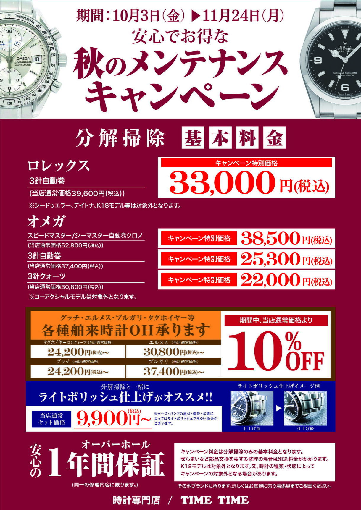 ロレックス・オメガをはじめ、グッチ・エルメス・タグホイヤーなど各種舶来時計のオーバーホールもご相談ください!!