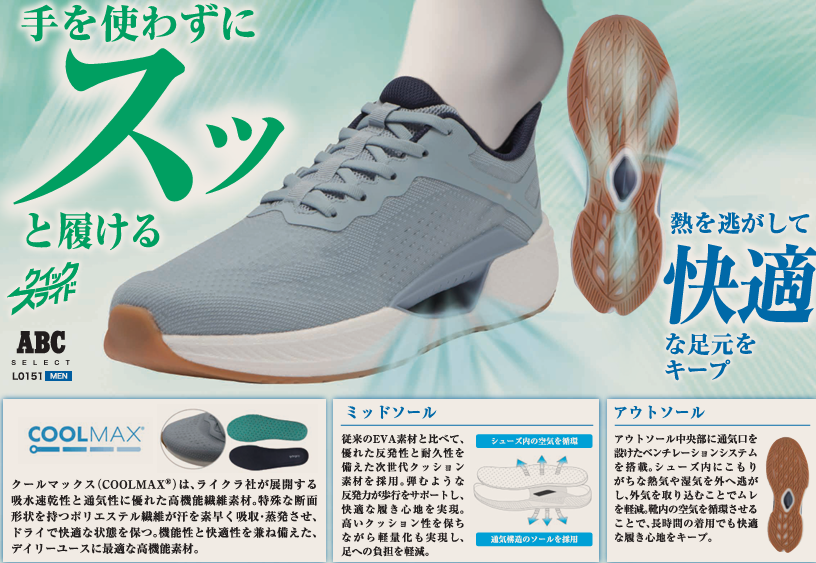 手を使わずに履けるハンズフリーQuickSlideのスリップオンモデル。