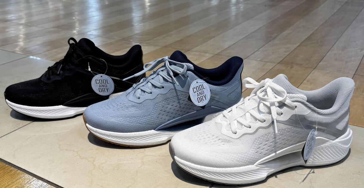 アッパーには冷感ニット、ライニングとインソールにはCOOLMAX冷感資材を使用し爽やかな履き心地。