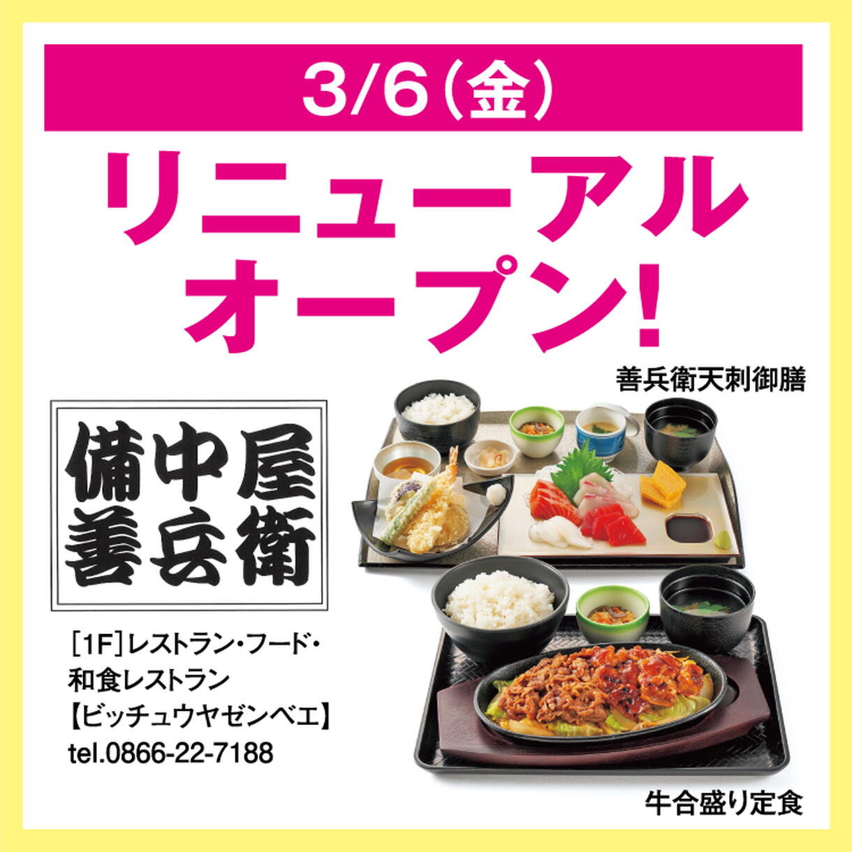 3/6(金) 備中屋善兵衛 リニューアルオープン!