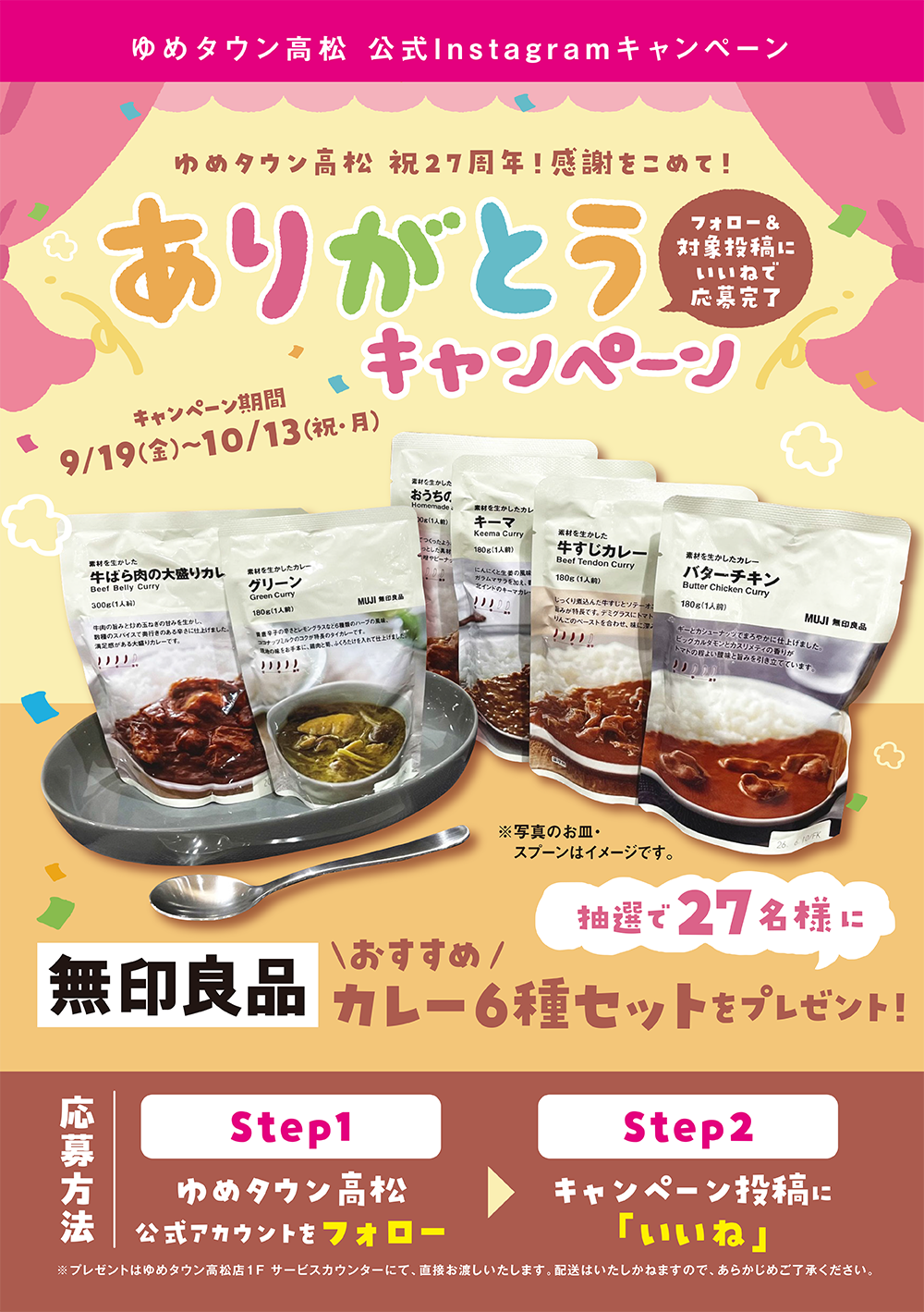 10/13(祝・月)まで!ゆめタウン高松 公式インスタグラム「ありがとうキャンペーン」