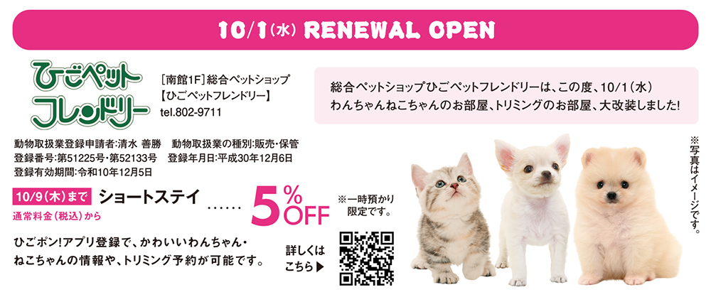 10/1(水) ひごペットフレンドリー RENEWAL OPEN