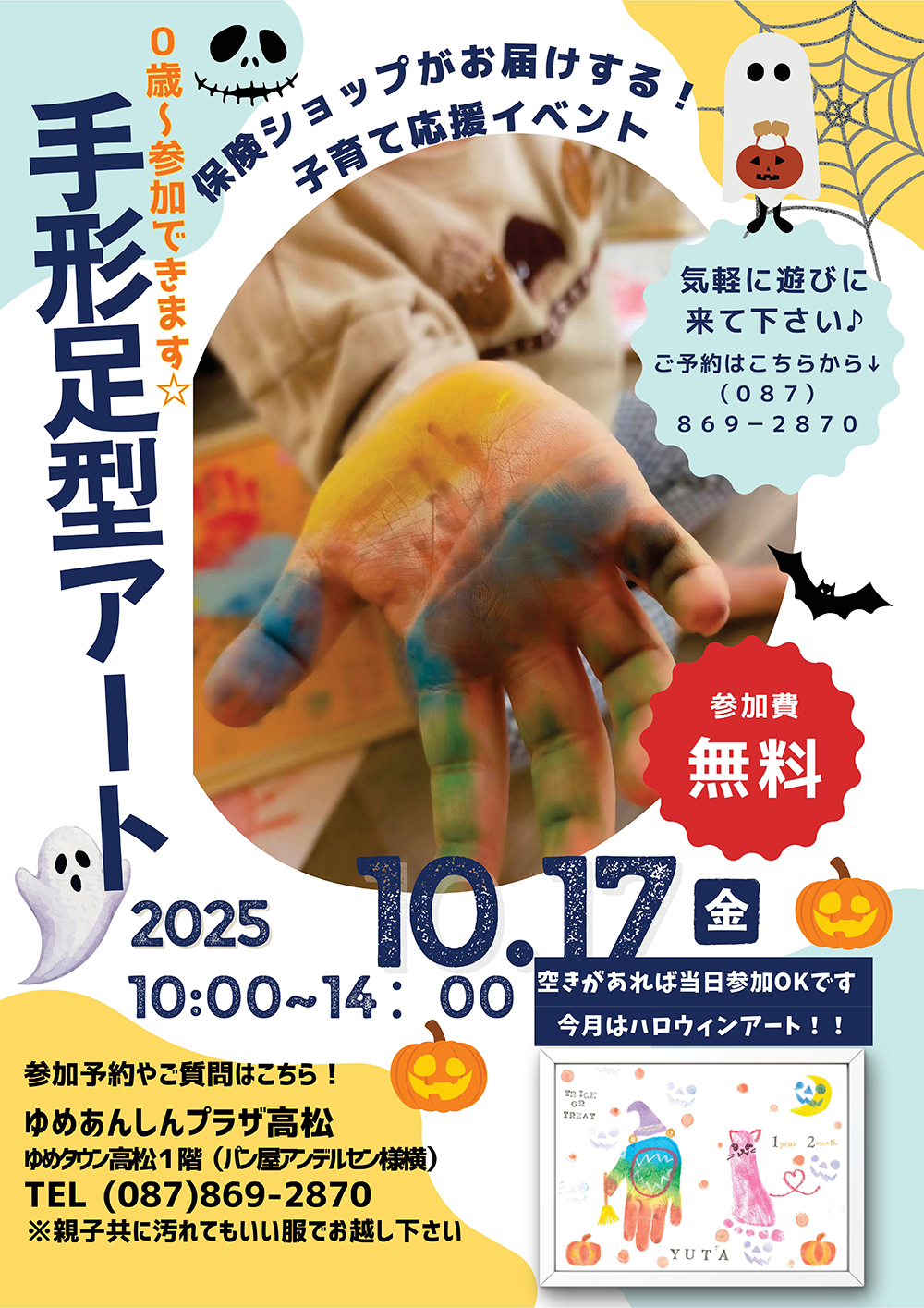 10/17(金) ゆめあんしんプラザ 10月は「ハロウィンアート」手形足型で虹色モンスターを作ろう