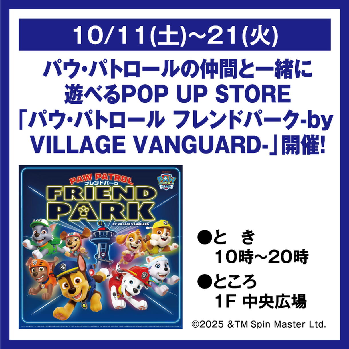 パウ・パトロールの仲間と一緒に遊べる POP UP STORE 「パウ・パトロール フレンドパーク-by VILLAGE VANGUARD-」開催!