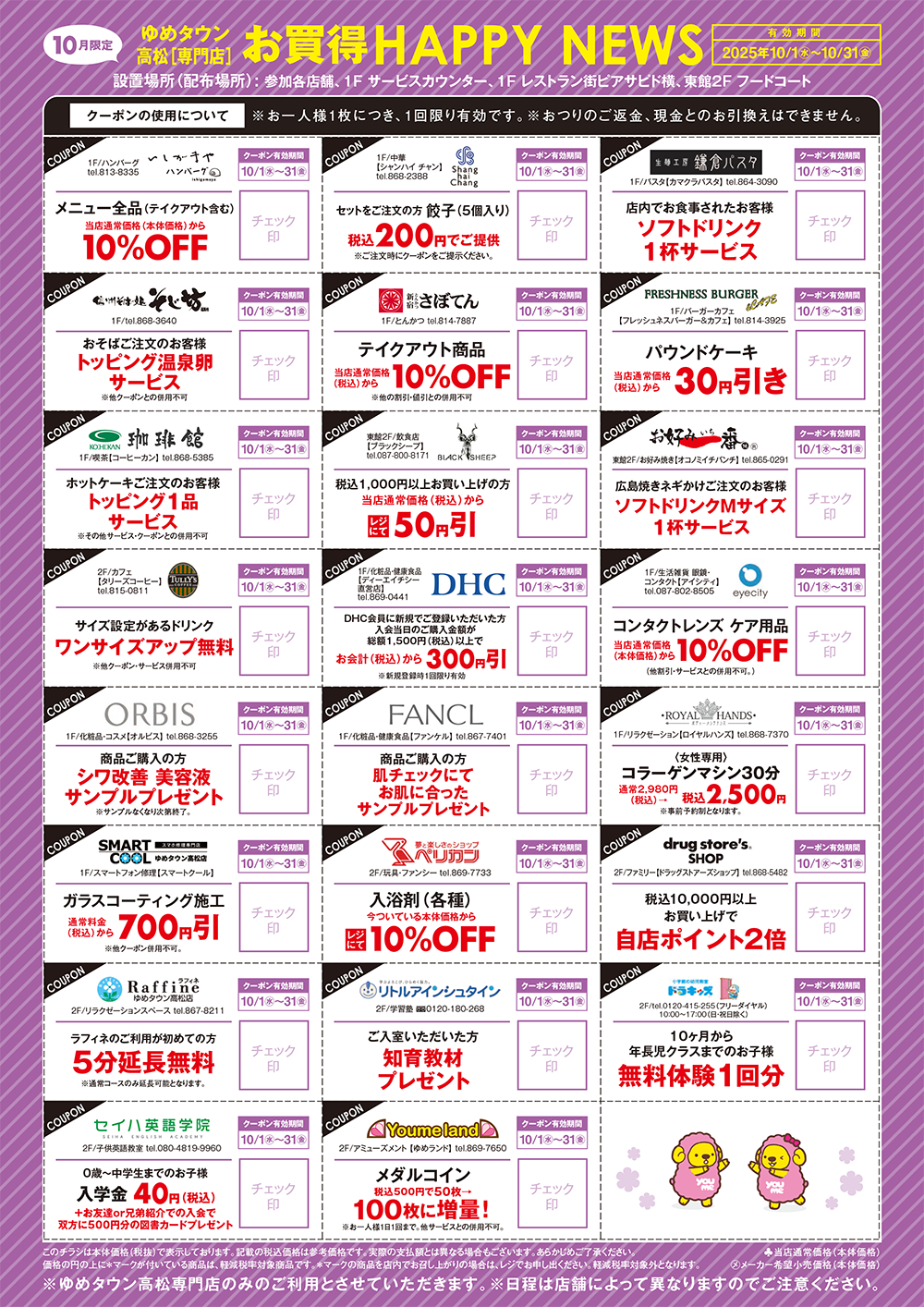 ・専門店(一部専門店除く) 10:00~21:00