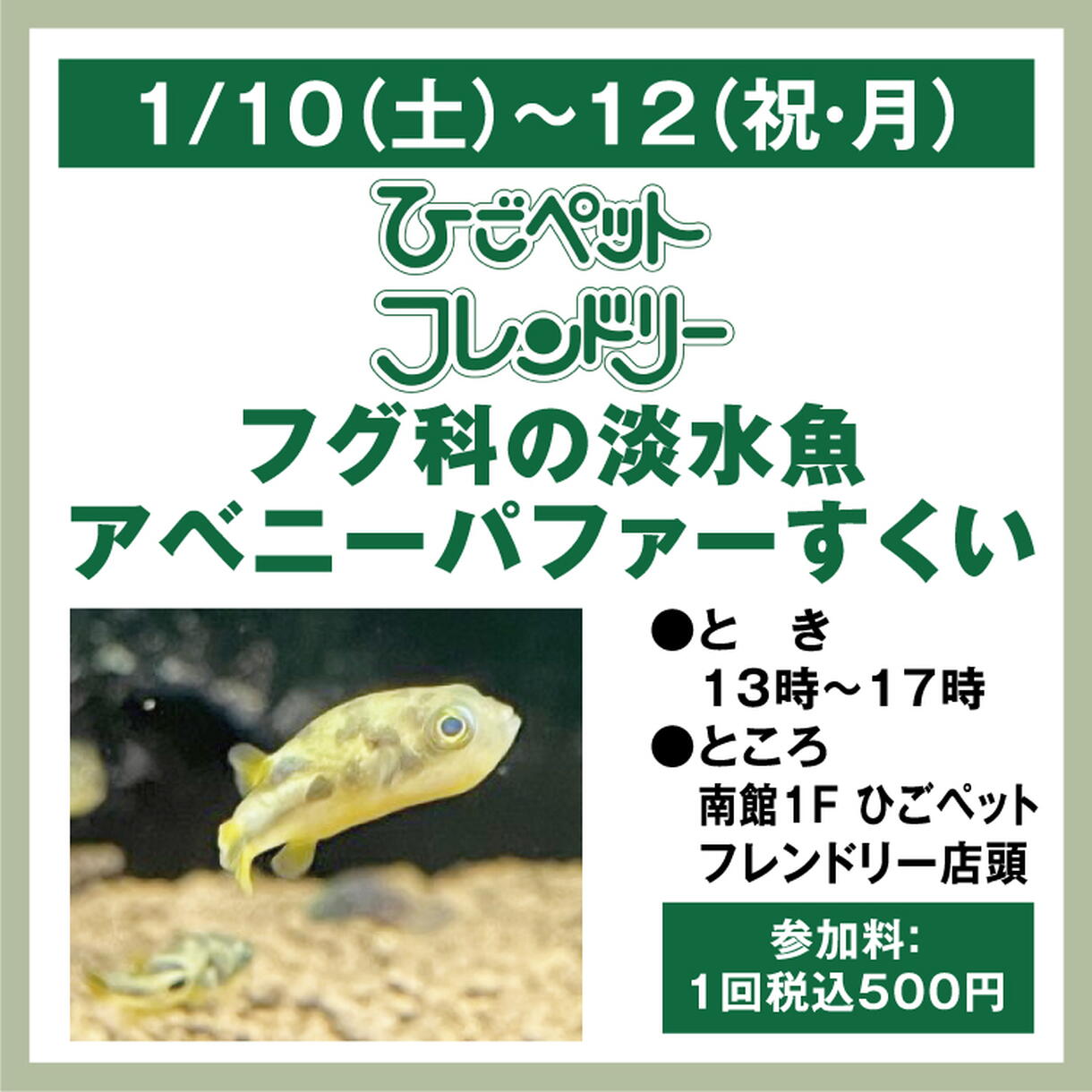 ひごペットフレンドリー フグ科の淡水魚 アベニーパファーすくい