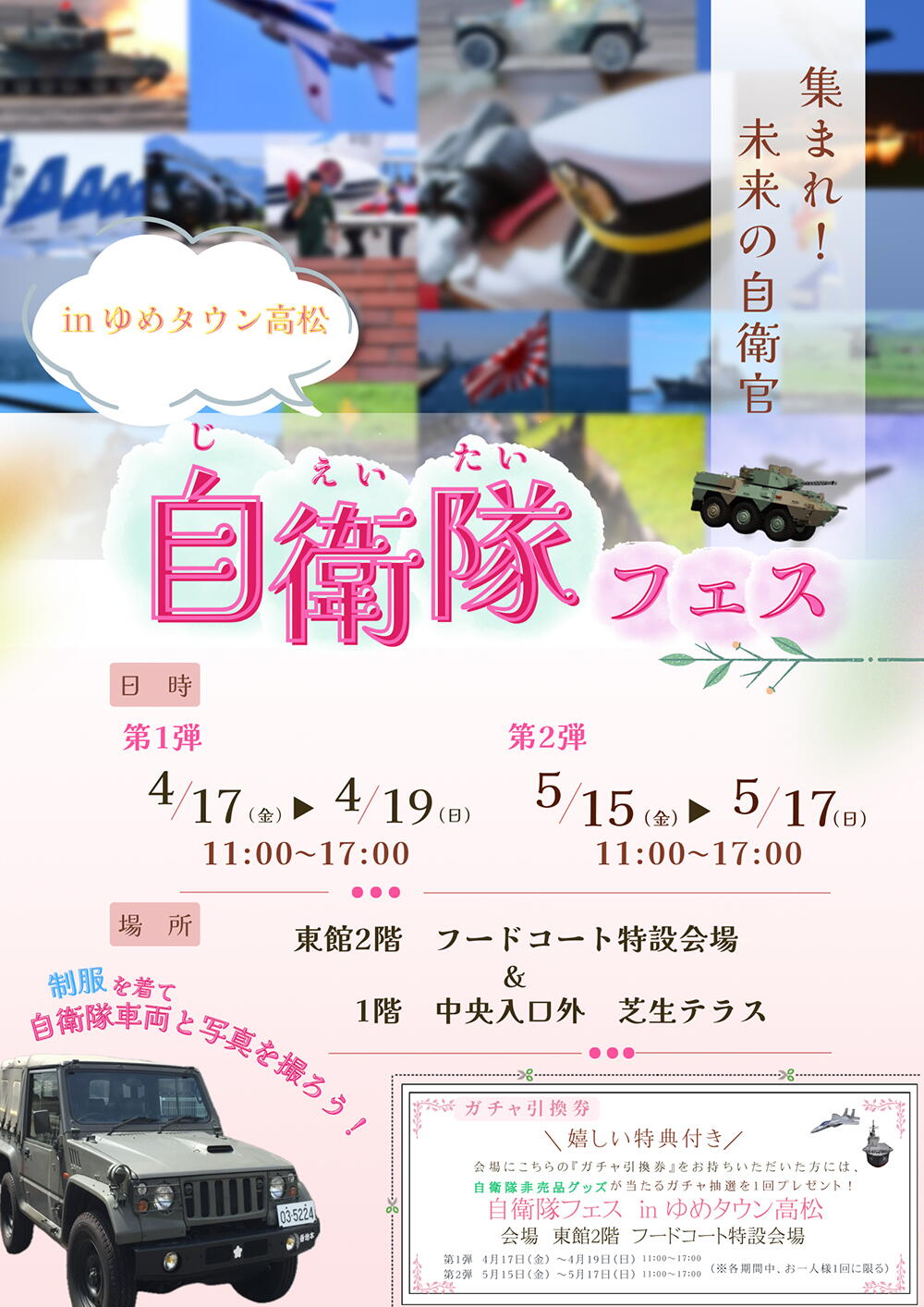 第1弾 4/17(金)~19(日):第2弾 5/15(金)~17(日) 自衛隊フェス