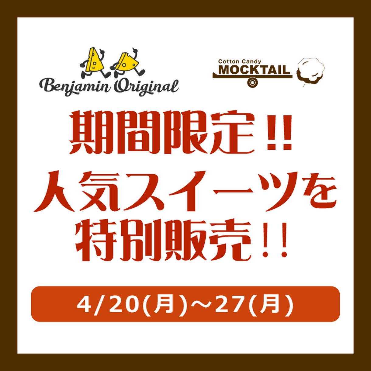 4/20(月)~27(月) 期間限定!!人気スイーツを特別販売!!