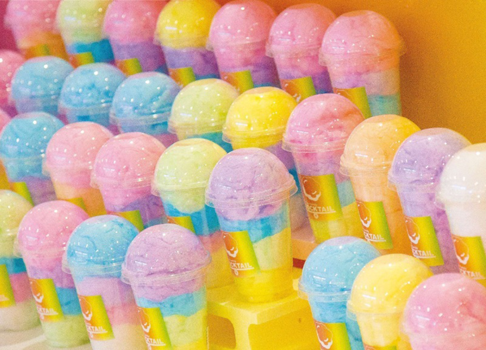 七色のザラメから作られるふわふわのコットンキャンディーカップ「モクテル」