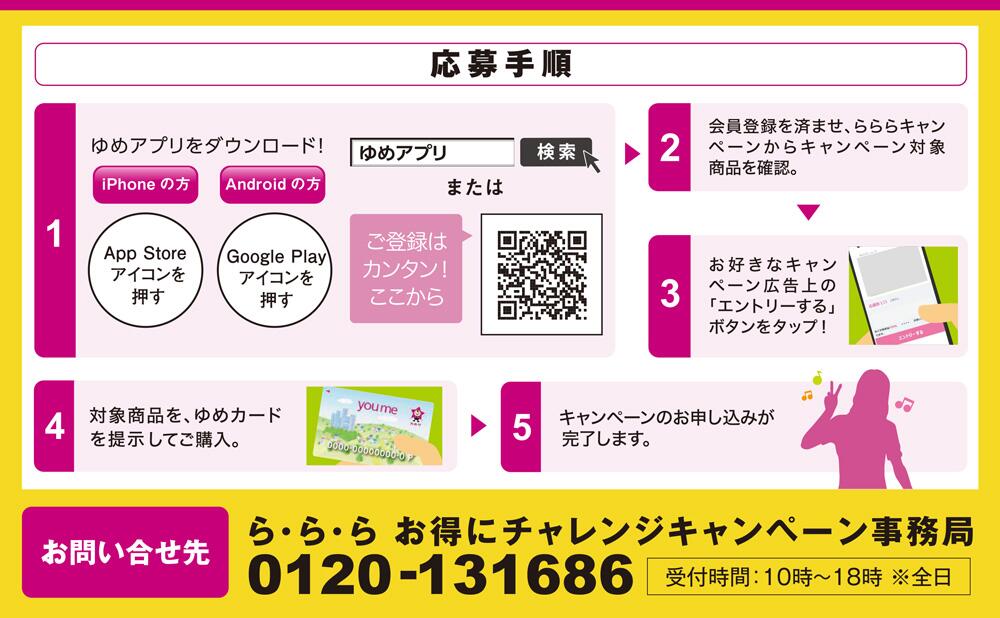 ※対象店舗・商品などキャンペーンの詳細は、ゆめアプリ「ら・ら・ら・キャンペーン」でご確認ください。