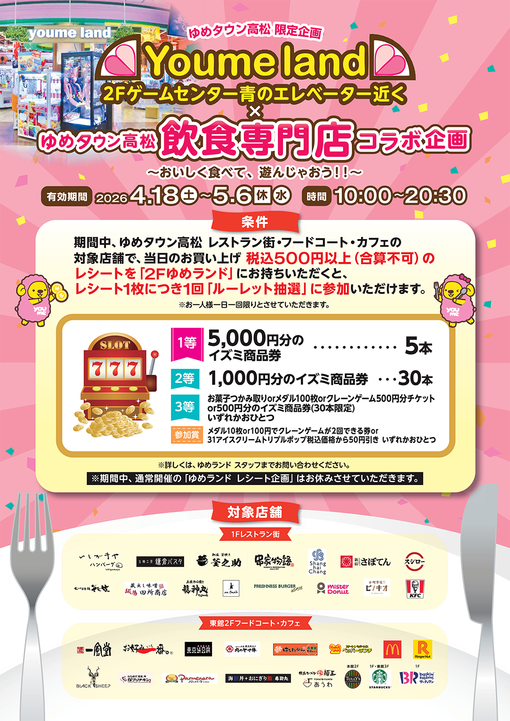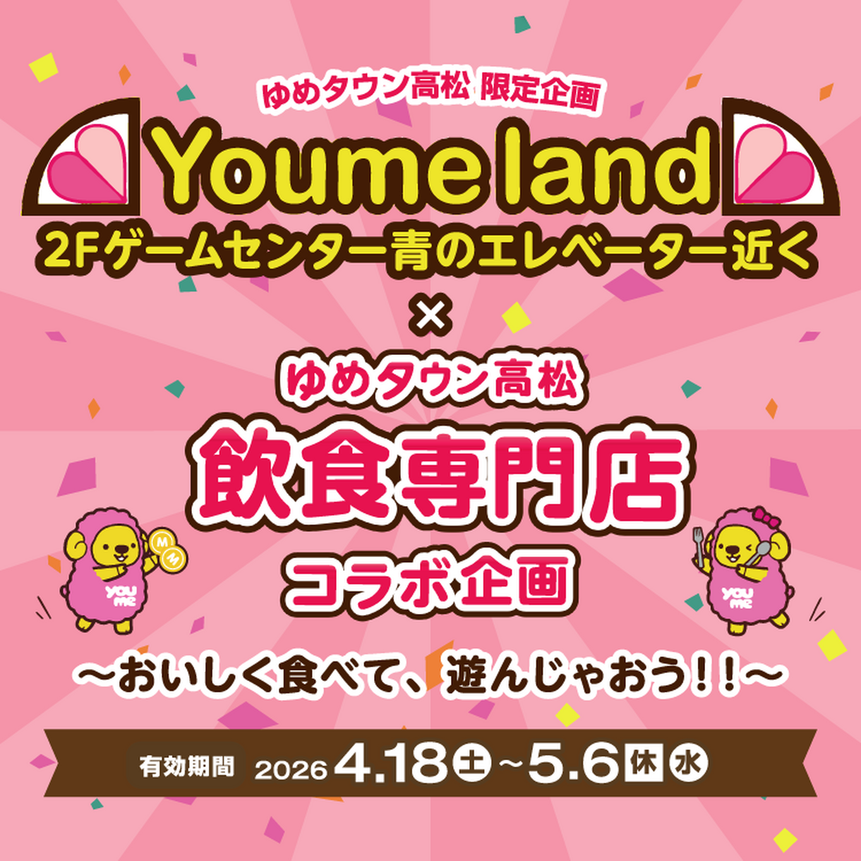 4/18(土)~5/6(休・水) ゆめランド×飲食専門店コラボ企画 ~おいしく食べて、遊んじゃおう!!~