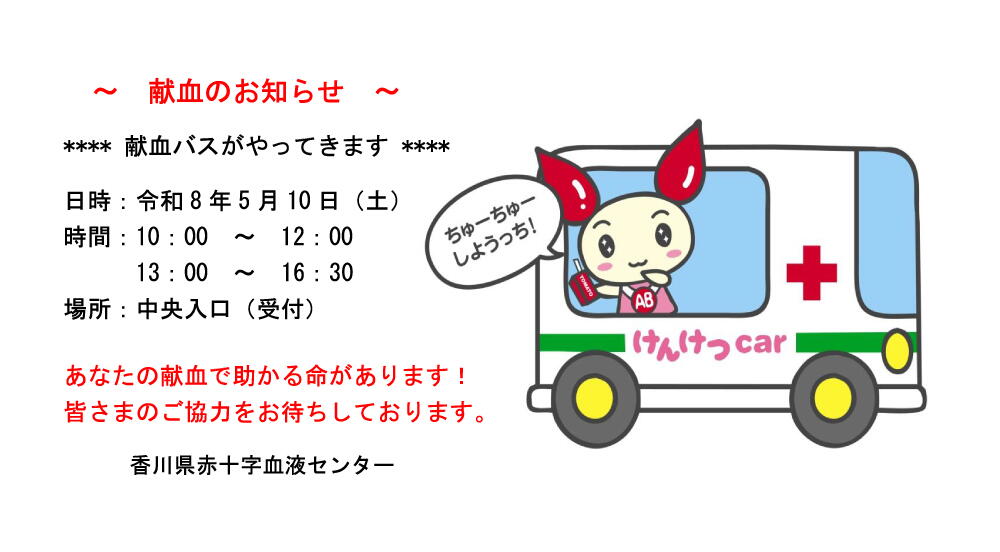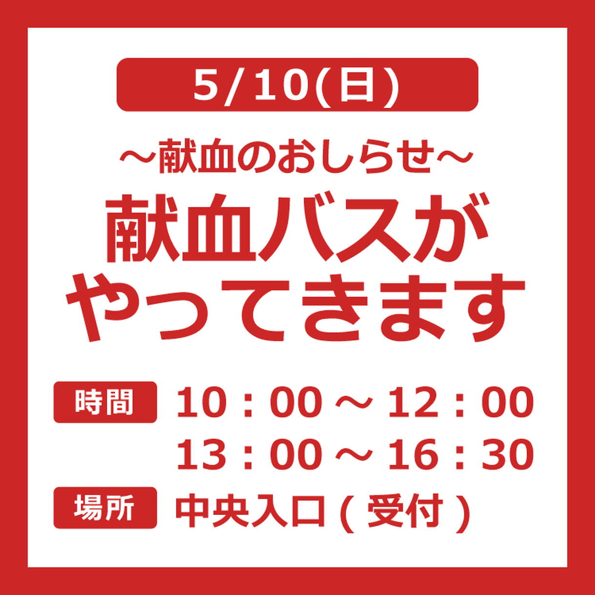 5/10(日) ~献血のおしらせ~ 献血バスがやってきます