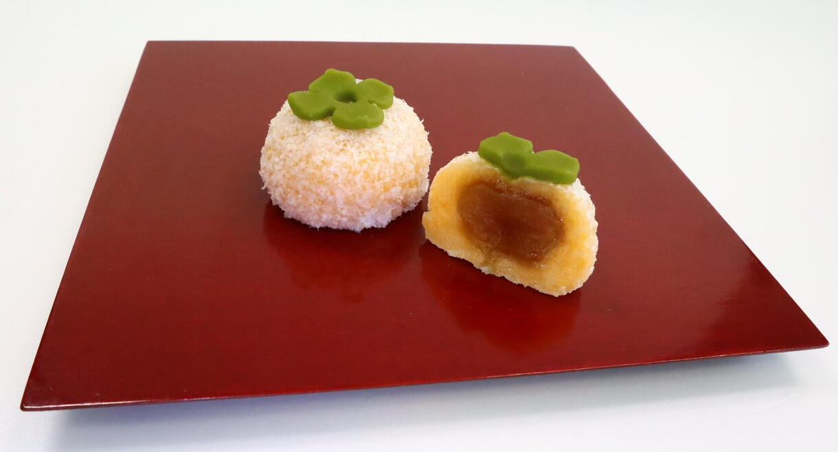 もっちりとしたつぶつぶの道明寺で旬の柿餡を包みました。