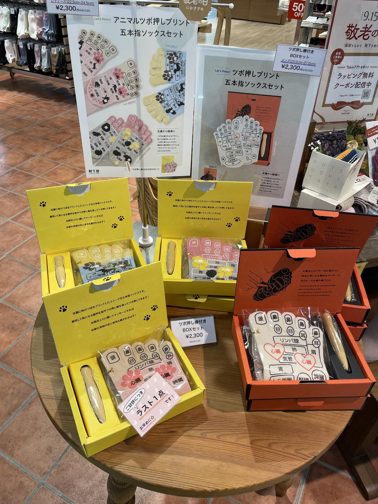 ツボ押し棒付き、5本指ソックスBOXセット。