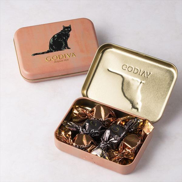 黒ネコが描かれた限定缶に、「ミルク」と「ダーク」のG キューブ チョコレートを詰め合わせました。