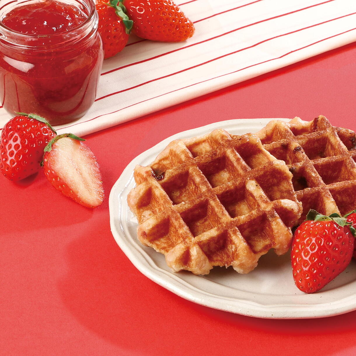 コク深いあまおう苺ジャム、甘酸っぱい風味がぎゅっとつまったドライストロベリーと酸味のある苺顆粒を合わせた、甘さと酸味の果実感あふれるワッフルに仕上げました。春らしい苺の甘みと酸味を詰め込んだワッフルです。ぜひお召し上がりください!