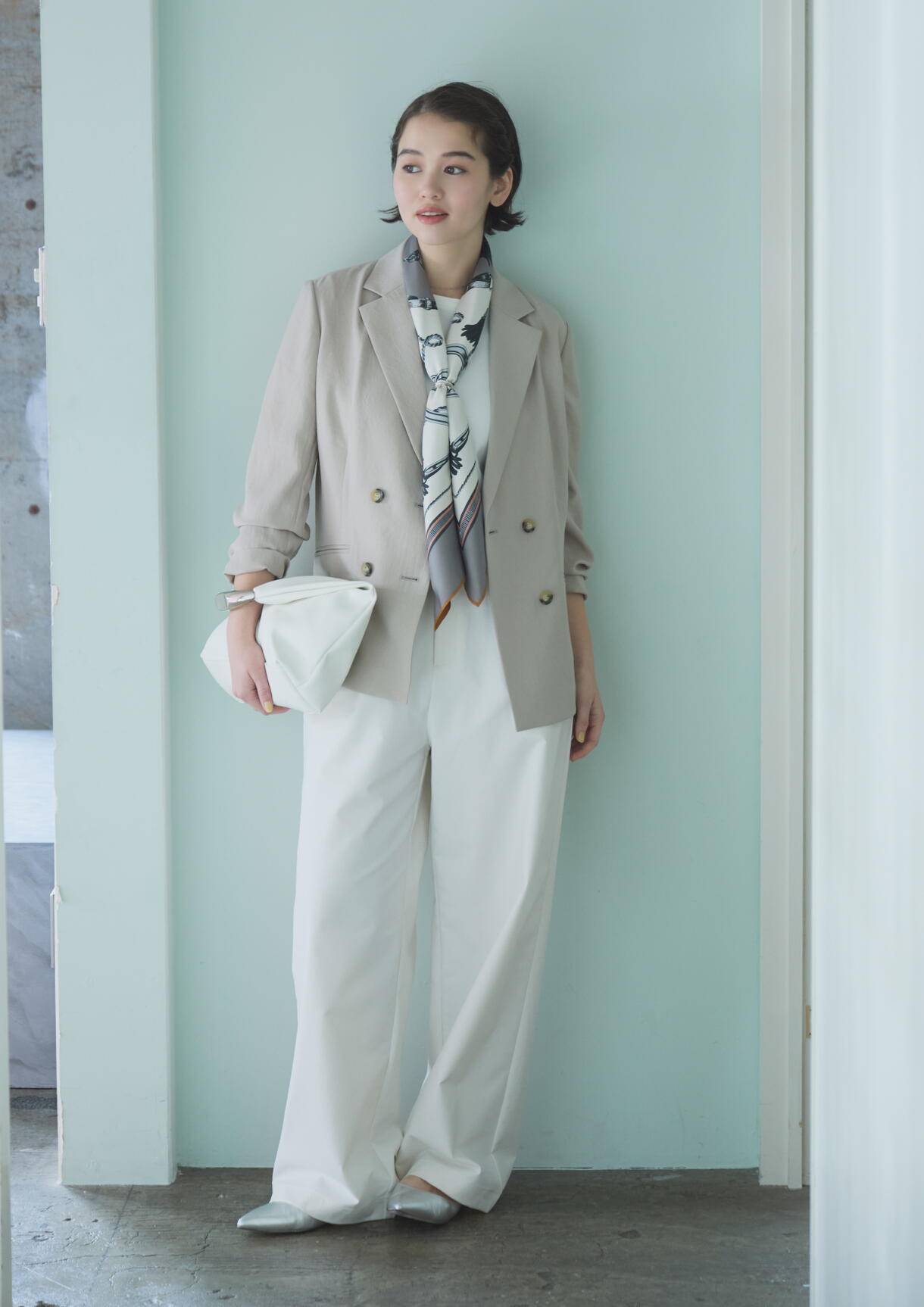 ほどよいリラックス感のあるダブルテーラードジャケット。