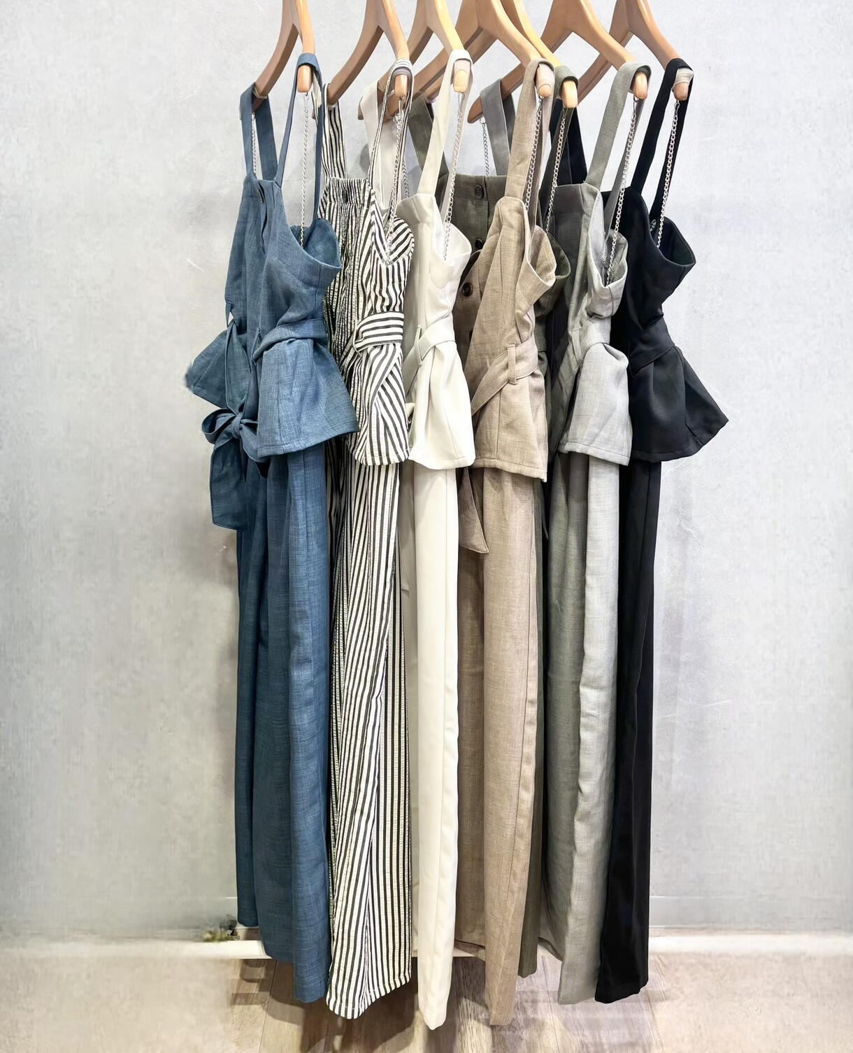 ビスチェはウエストリボンでシルエット調整ができ、パンツはイージー使用でリラックス感のある履き心地。