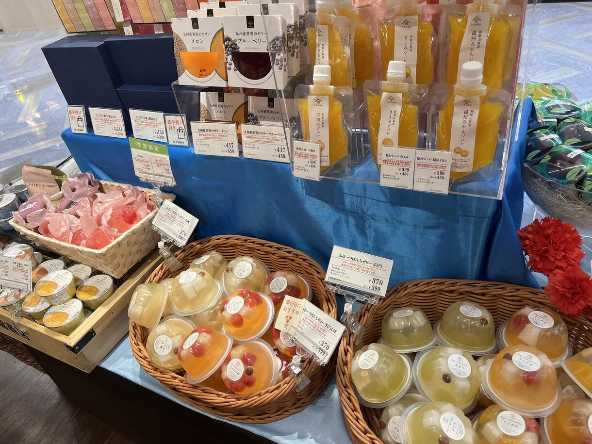 当店では「初夏を彩る久世福の涼菓」コーナーを展開中です。くだもの盛りだくさんのフルーツポンチのようなゼリーや果実を贅沢に使った国産果実のゼリーなど、目にも楽しい色とりどりなゼリーや京都の老舗あんこ屋が手がけた懐かしプリン水ようかんなどみずみずしい和菓子も取り揃えております。
