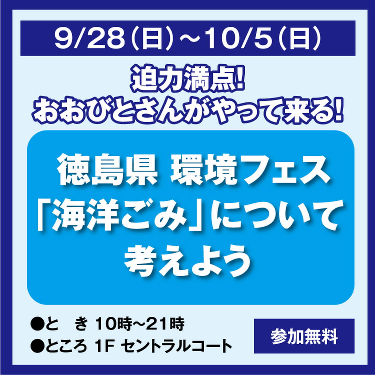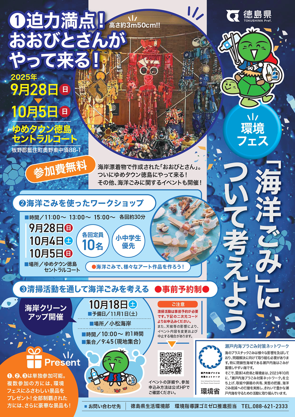 迫力満点! おおびとさんがやって来る! 徳島県 環境フェス 「海洋ごみ」について考えよう