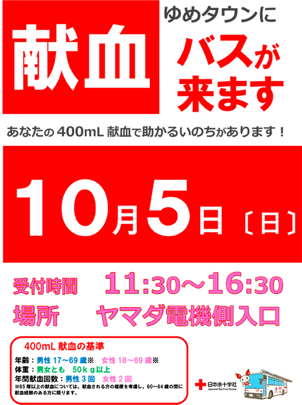 10/5(日) 献血バスが来ます
