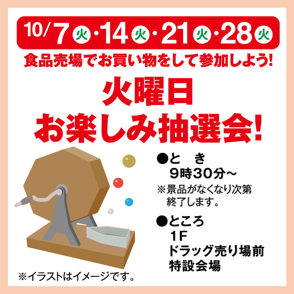 食品売場でお買い物をして 参加しよう! 火曜日お楽しみ抽選会!