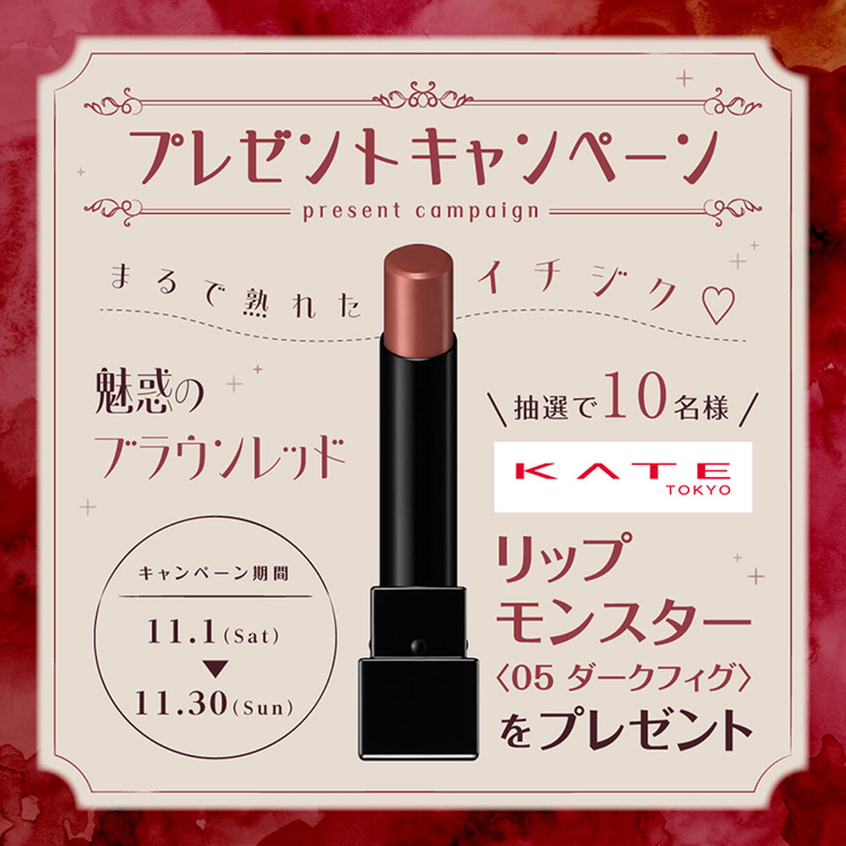 「KATE リップモンスター〈05 ダークフィグ〉」を抽選で10名様にプレゼントいたします。