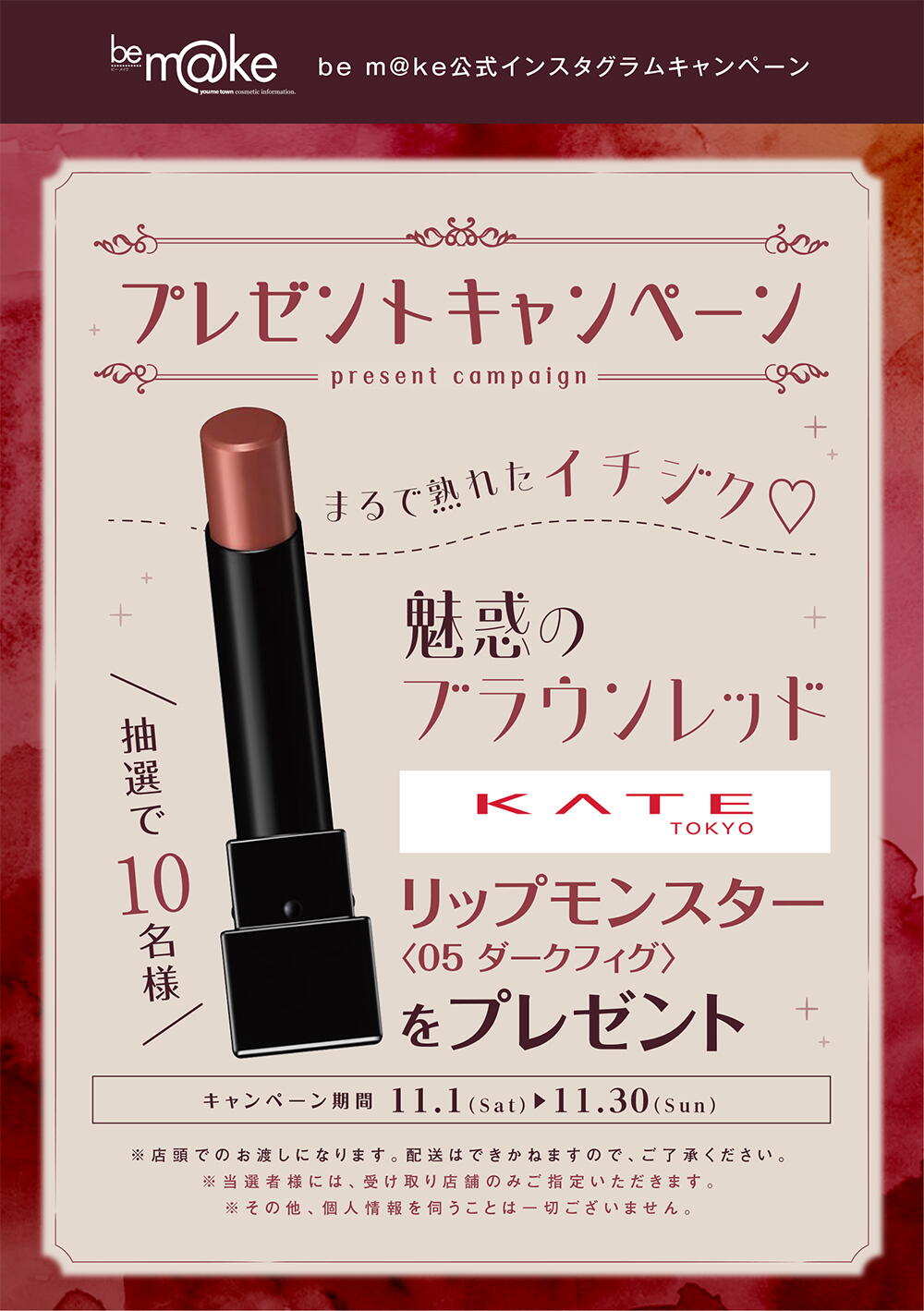11/1(土)~11/30(日) be m@ke公式インスタグラムキャンペーン企画『Present Campaign』