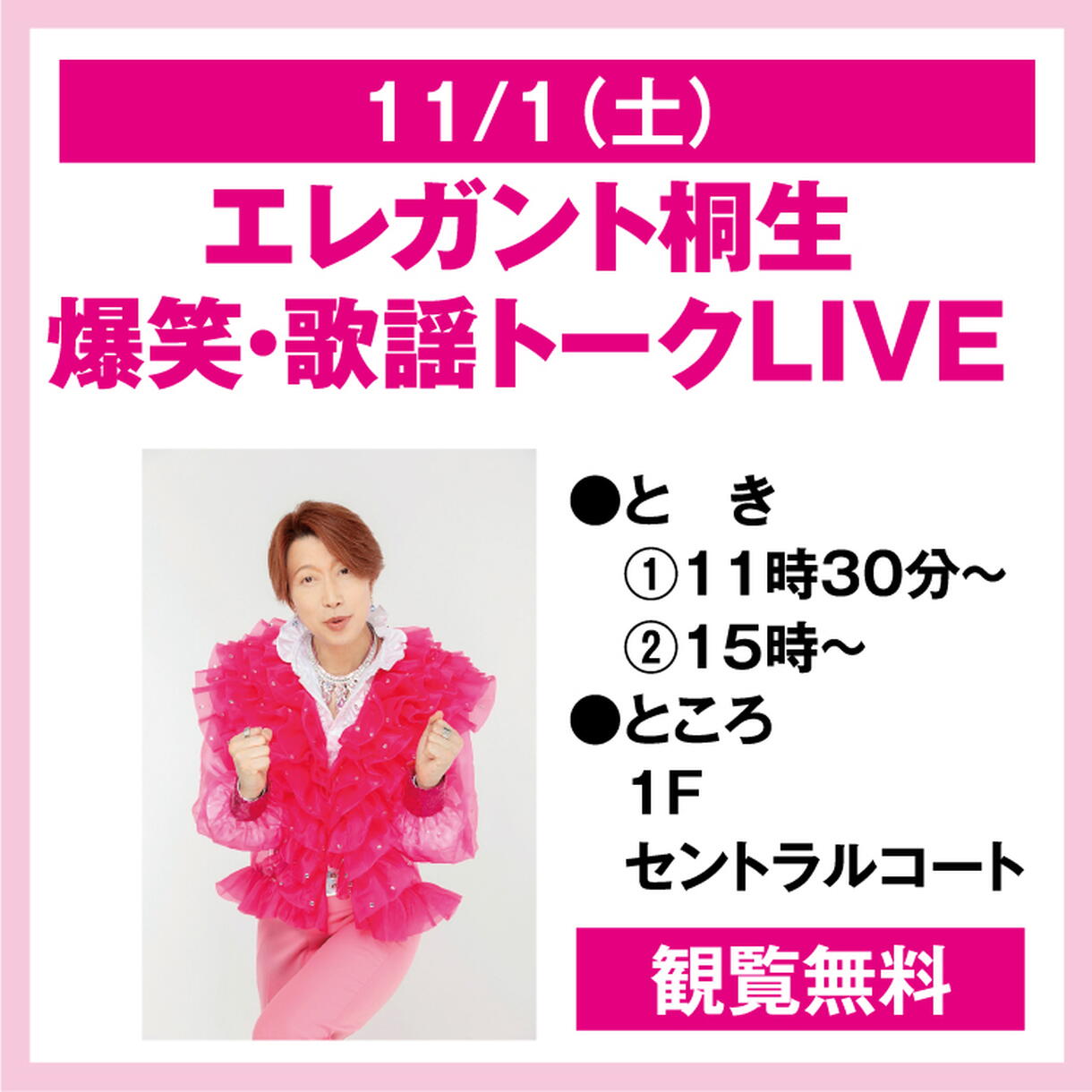 エレガント桐生は、“音程迷子の新人歌手"としてSNSでも話題を呼んでおり、昭和・平成の名曲を独自のスタイルで歌い上げるライブが幅広い世代のお客様にご好評をいただいております。