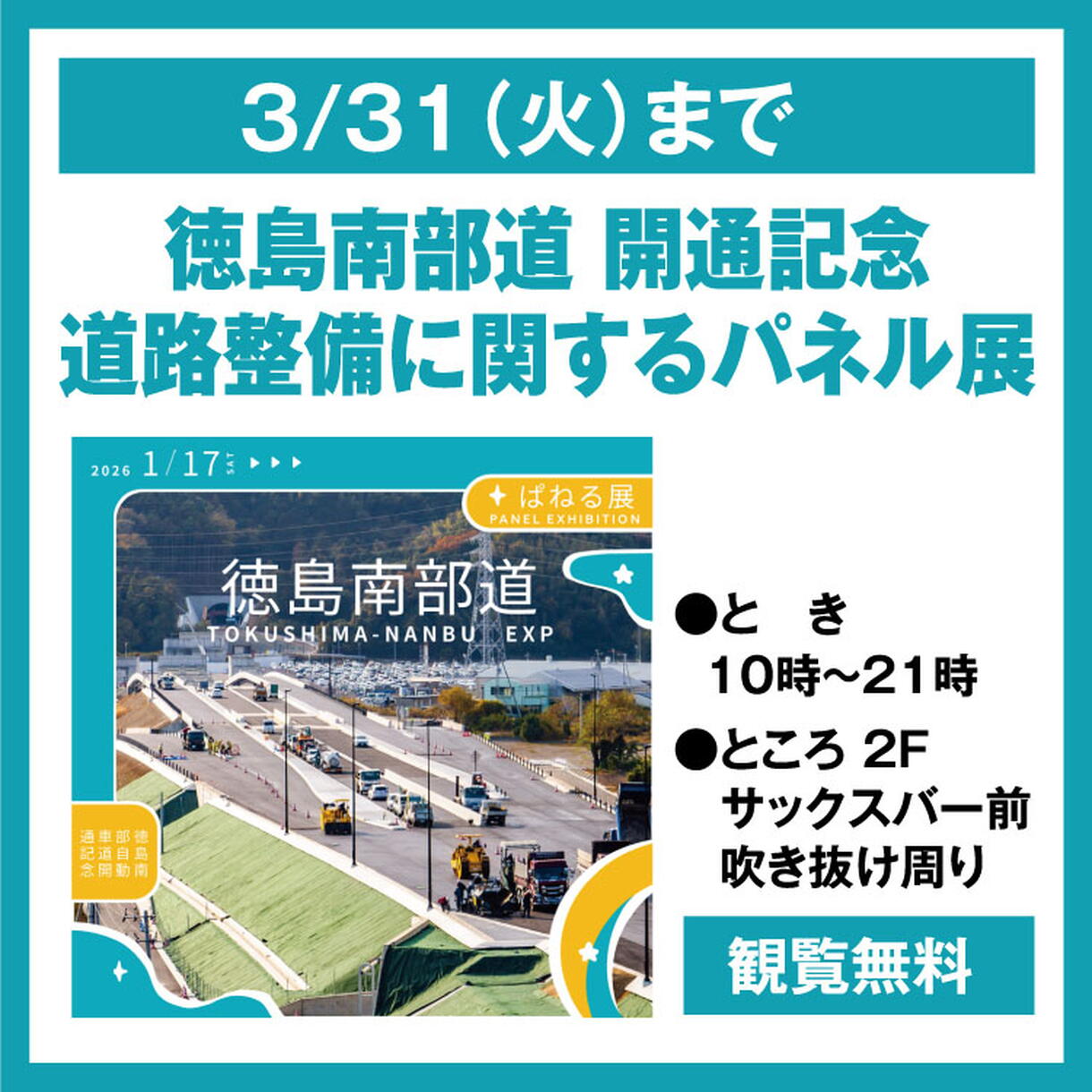 徳島南部道 開通記念 道路整備に関するパネル展
