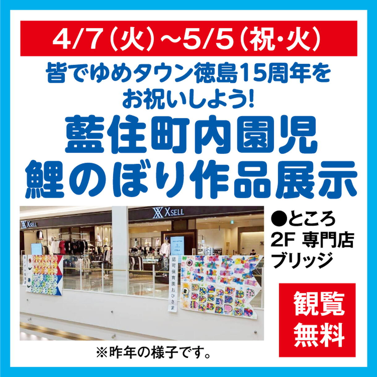 皆でゆめタウン徳島15周年をお祝いしよう! 藍住町内園児 鯉のぼり作品展示
