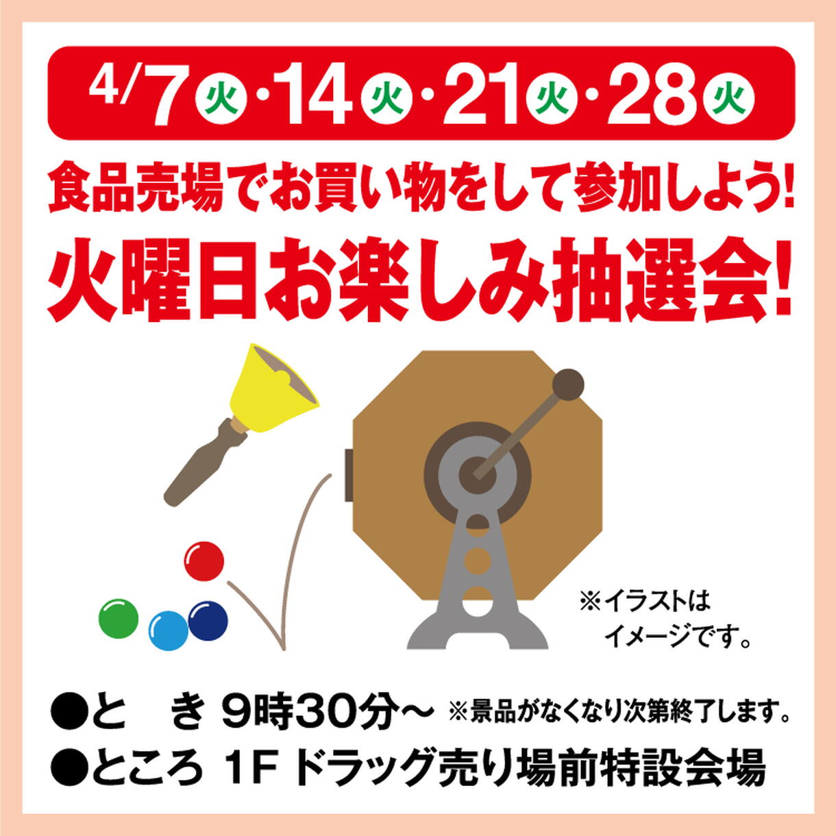 食品売場でお買い物をして参加しよう! 火曜日お楽しみ抽選会!