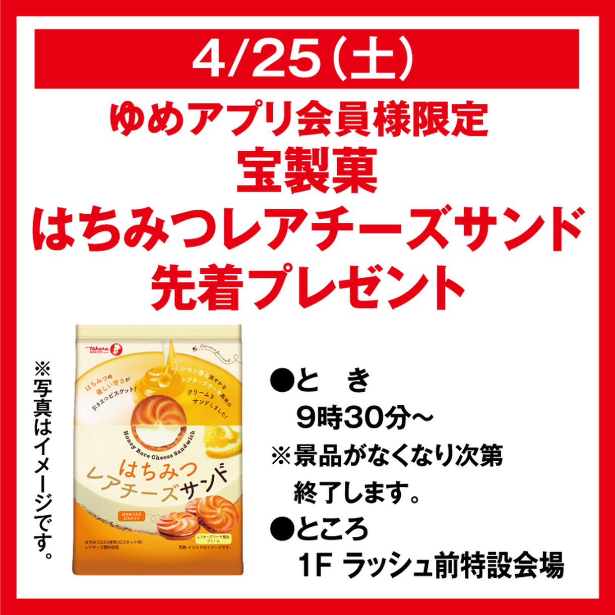 ゆめアプリ会員様限定 宝製菓 はちみつレアチーズサンド 先着プレゼント