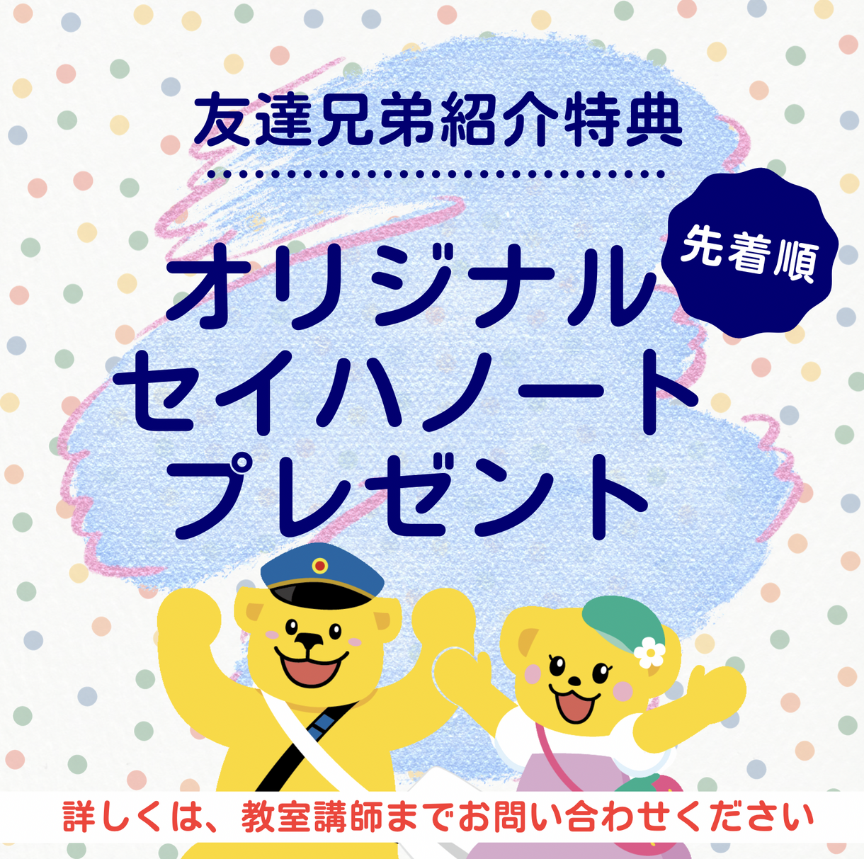 ○お友達・兄弟姉妹紹介でオリジナルセイハノートをプレゼント!