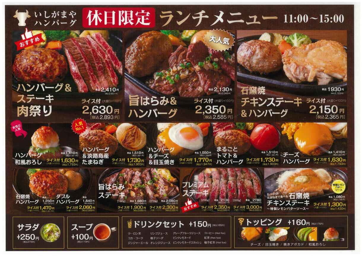 その他にも、ハンバーグ&ステーキのコンボメニューやプレミアムステーキなどもご用意しております。