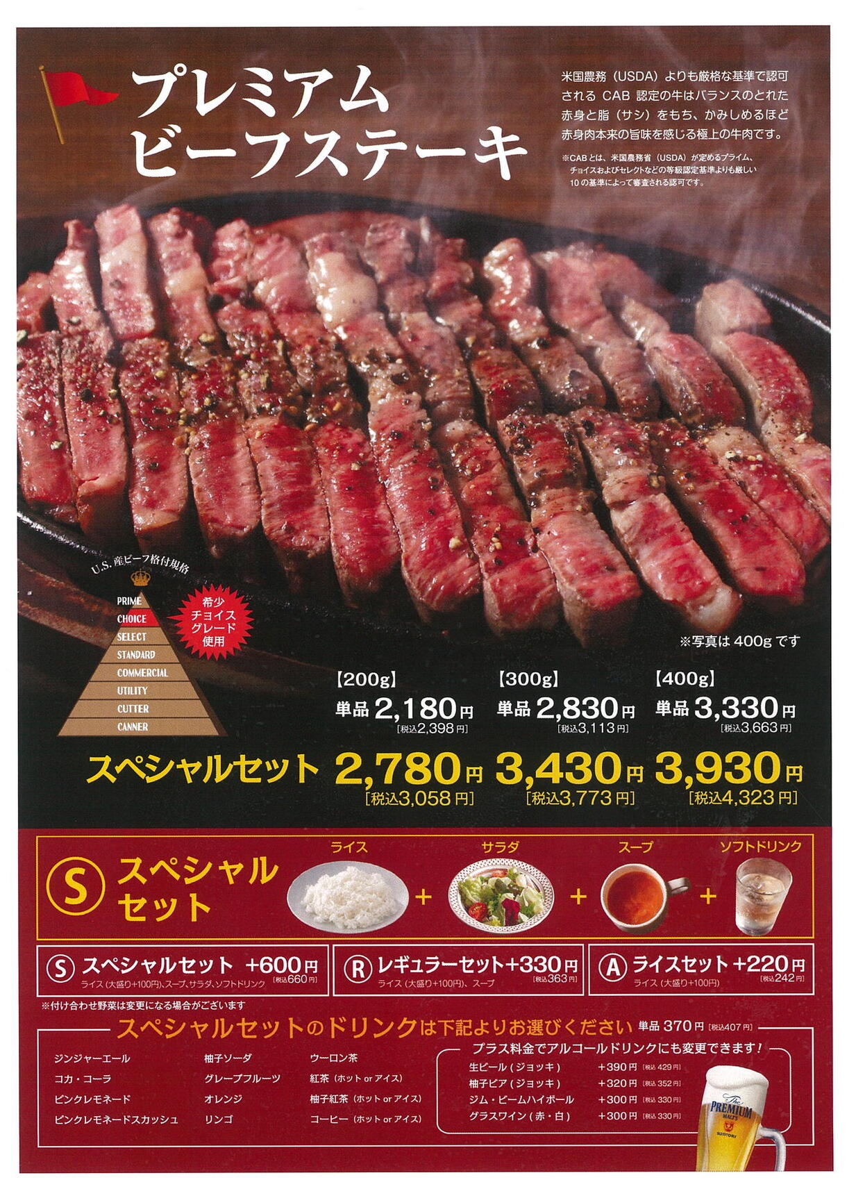 いしがまやのステーキは、U.S.産ビーフ格付規格 『チョイスグレード』を使用!!