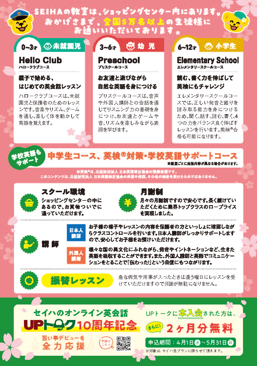 さてお教室では春の入会キャンペーン第二弾がスタートいたしました!