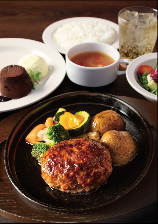 石窯で焼くハンバーグステーキ専門店。厳選した高品質な牛肉を100%使用、独自に開発したハンバーグ専門窯で焼くことにより、お肉の旨みをぎゅっととじこめ、ふっくらジューシーに焼き上げる究極のハンバーグは絶品です。