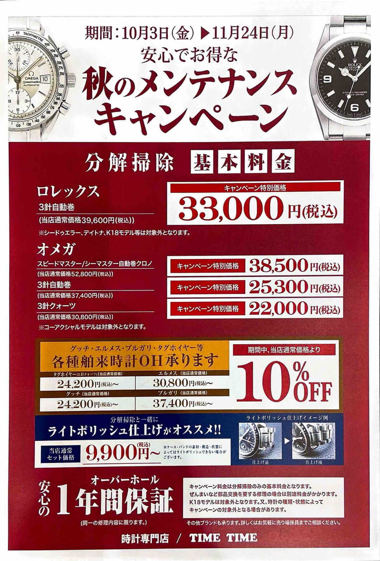 ロレックス・オメガその他舶来時計のメンテナンスがお得になる大チャンス!
