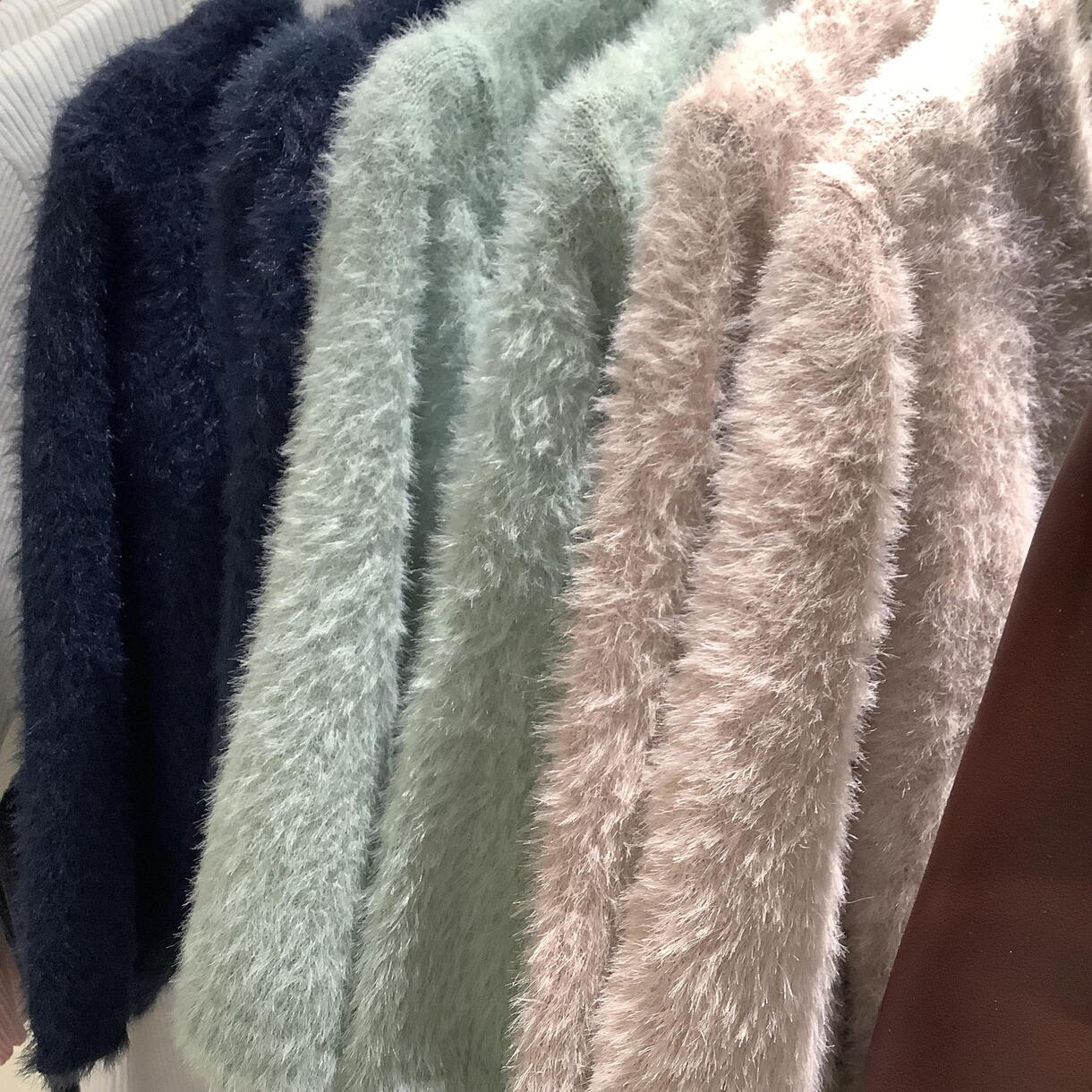 肌触りの良いフェザー素材と、トレンド感のあるカラーが特徴です!