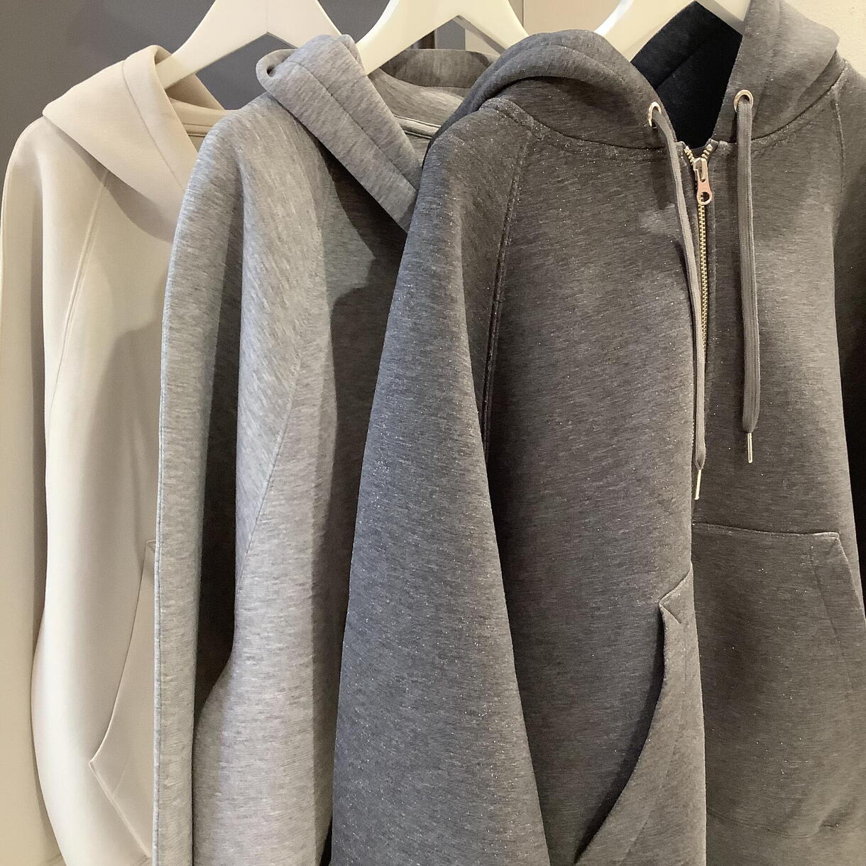 立体的なシルエットが楽しめる大人のミニマルZIPパーカー。ボンディング素材で立ちやすいフードやボリュームのある袖がポイント。後ろ身頃にはタックを施し、ややコクーンのシルエットは腰回りをカバーできるこだわりポイントです。