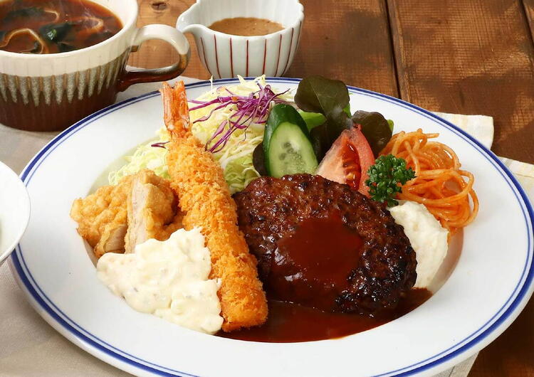 ハンバーグ、オムライス、スパゲティ、パフェ