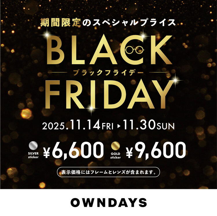 OWNDAYSでは、11月14日(金曜日)から11月30日(日曜日)までの期間、BLACK FRIDAY SALEを開催中です。