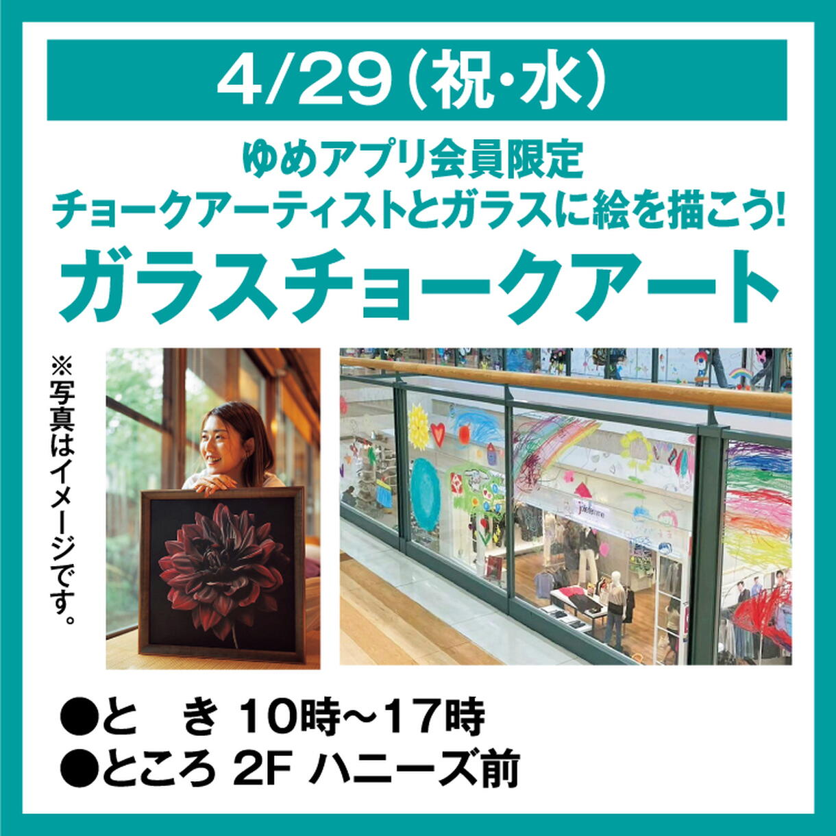 ゆめアプリ会員限定 チョークアーティストとガラスに絵を描こう! ガラスチョークアート