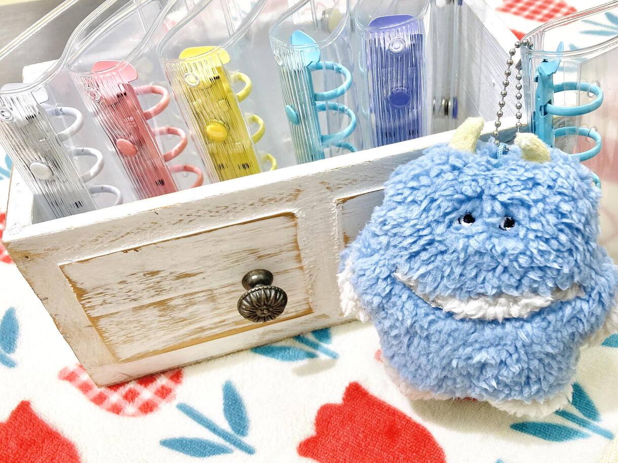 クリアな見た目がかわいいシール帳、キーホルダーを飾れるストラップ穴付きです!キーホルダーが揺れると気分も上がりますよね(*>ω<)b