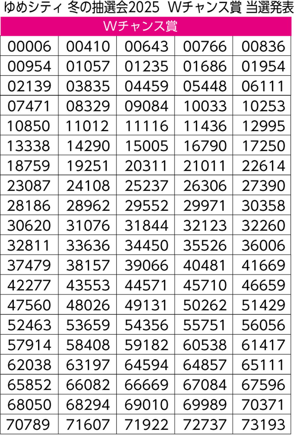 ゆめシティ 冬の抽選会2025 Wチャンス賞 当選発表