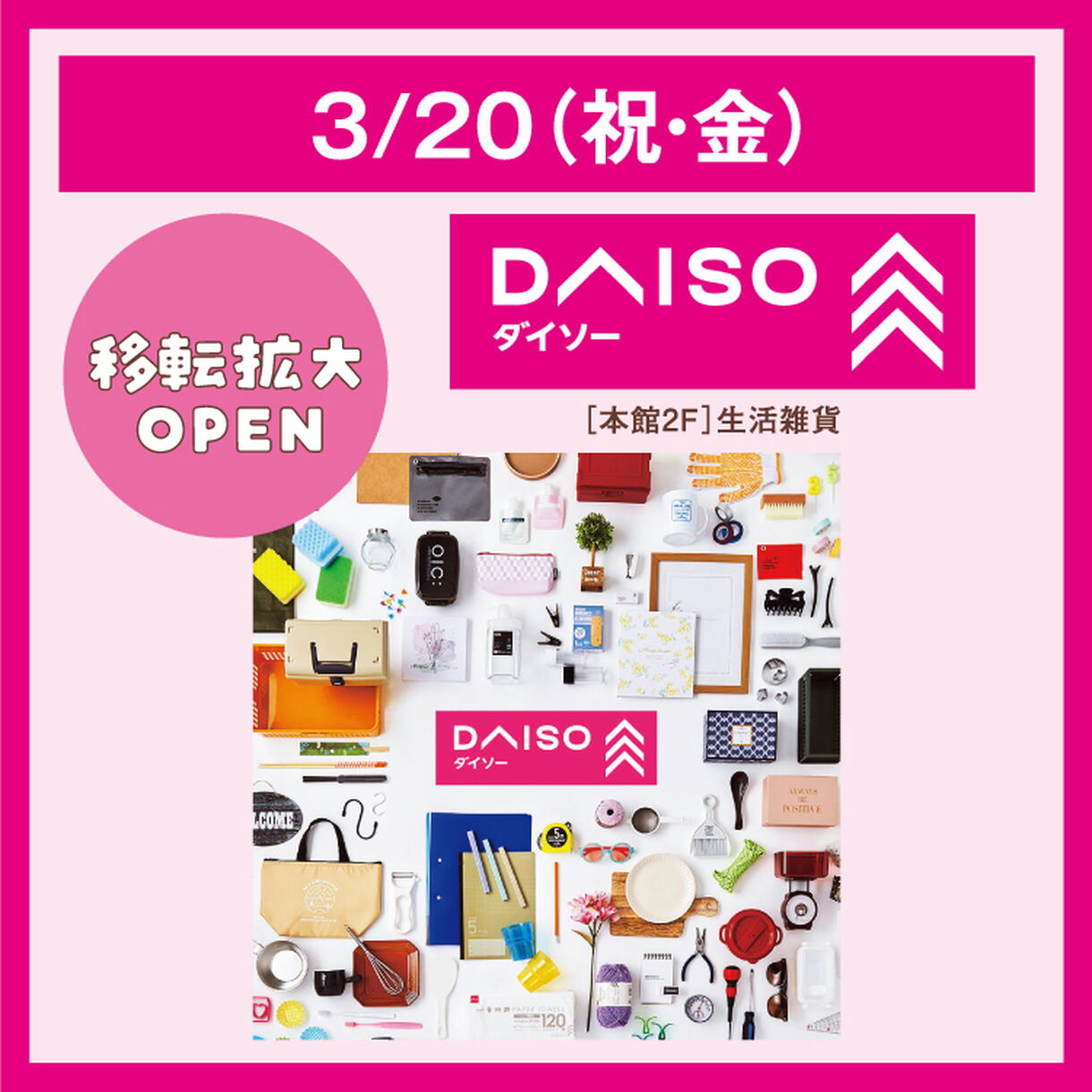 3/20(祝・金) ダイソー 移転拡大OPEN