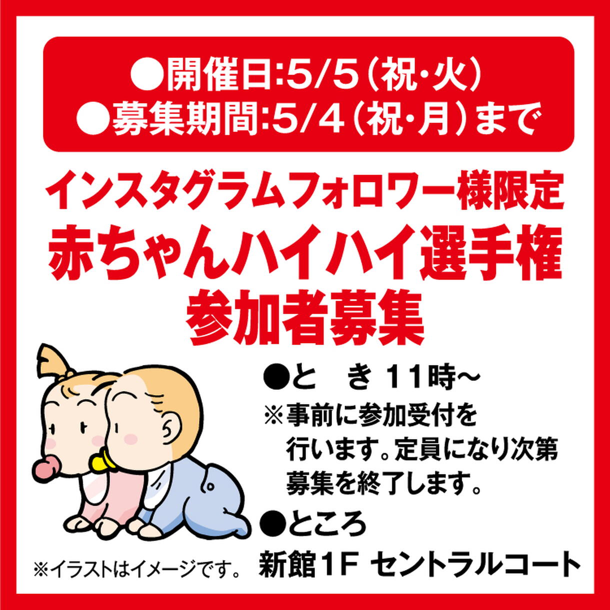 インスタグラムフォロワー様限定 赤ちゃんハイハイ選手権 参加者募集